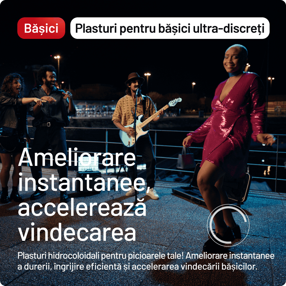 Pantofii incomozi pot duce la apariția bășicilor — folosește plasturii Compeed® pentru protecție eficientă împotriva frecării. Poți preveni apariția bășicilor și purtând două perechi de șosete subțiri când faci mișcare. Citește ghidul nostru complet de prevenție!